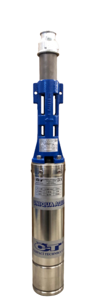 The submersible pump UNIQUA AQUA is used to draw drinking water, clean water and industrial water. The pump is suitable for pumping clean water from wells, from bores with minimal diameter of 100 mm to supply of households and tanks, or can be used for irrigation system with the maximal immersion of 40 meters. This pump can't be used for pumping waste water. To use the pump for pumping flammable liquids, toxic liquid substance (acid, alkali) and all oil products is forbidden! To use the pump in a place danger of explosion and in swimming pools where people are in contact with water, is forbidden, too. When pumping industrial water, mineral water or mining water, the maximal allowed pollution quality and concentration of hydrogen ions in the water must be observed to support the durability and reliability of the pump. The producer can make pump with different cable lengths, in accordance with the with wish of the costumer. The maximal temperature of water for pumping is 35°C. The pump can be used in vertical, horizontal or tilted position.